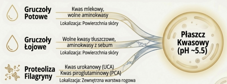 - Integralność bariery: Kwaśne pH sprzyja działaniu enzymów odpowiedzialnych za budowę bariery lipidowej, w tym produkcję ceramidów.