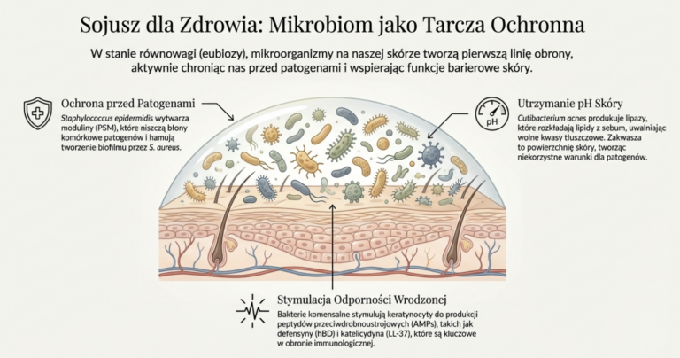 Skóra to nie tylko bariera mechaniczna, ale tętniący życiem ekosystem. Jest ona domem dla ogromnej liczby mikroorganizmów – bakterii, grzybów i wirusów, które tworzą tzw. mikrobiom. Zdrowa skóra to taka, na której panuje różnorodność biologiczna; kiedy ta równowaga zostaje zachwiana (dysbioza), pojawiają się problemy, takie jak stany zapalne czy nadmierny wzrost patogenów.